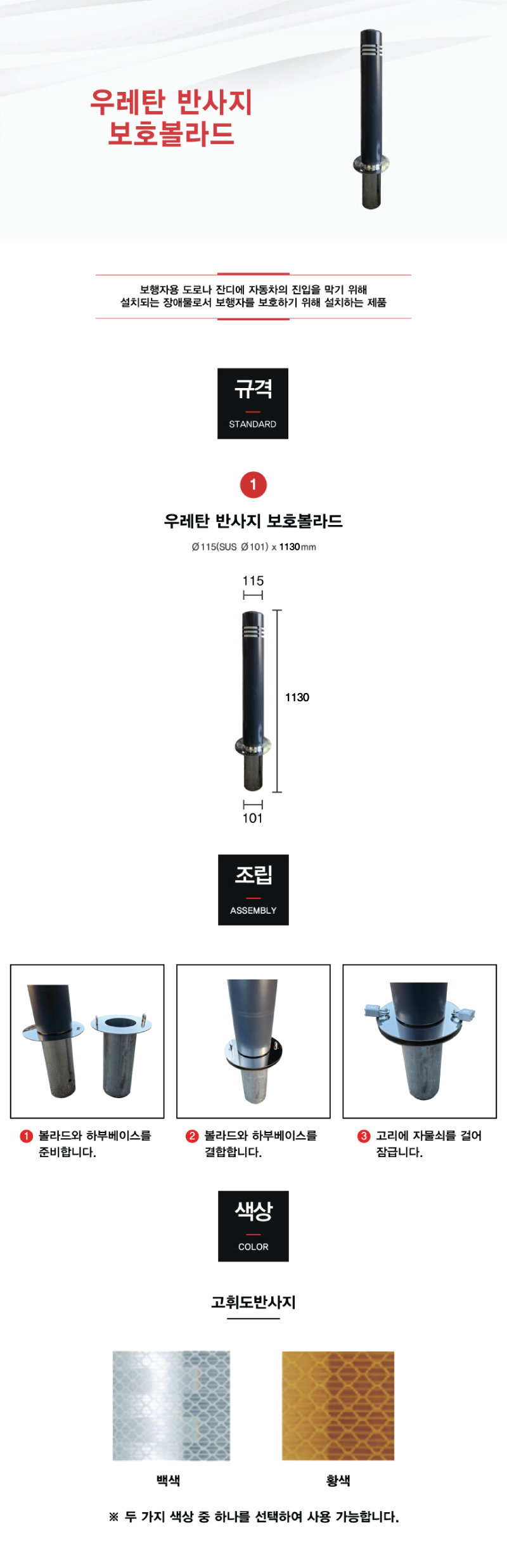 [H-9 탄성볼라드 반사지 보호볼라드] 우레탄 반사지 보호볼라드(이동식)
