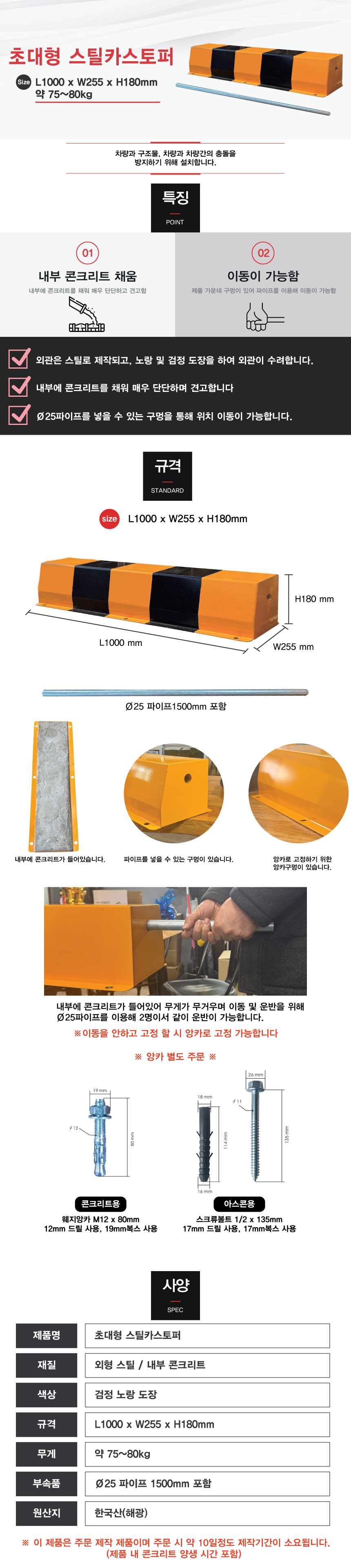 [H-2 카스토퍼(주차블럭) 스틸/스텐 카스토퍼 (특수 사이즈 주문가능)] 초대형 스틸카스토퍼