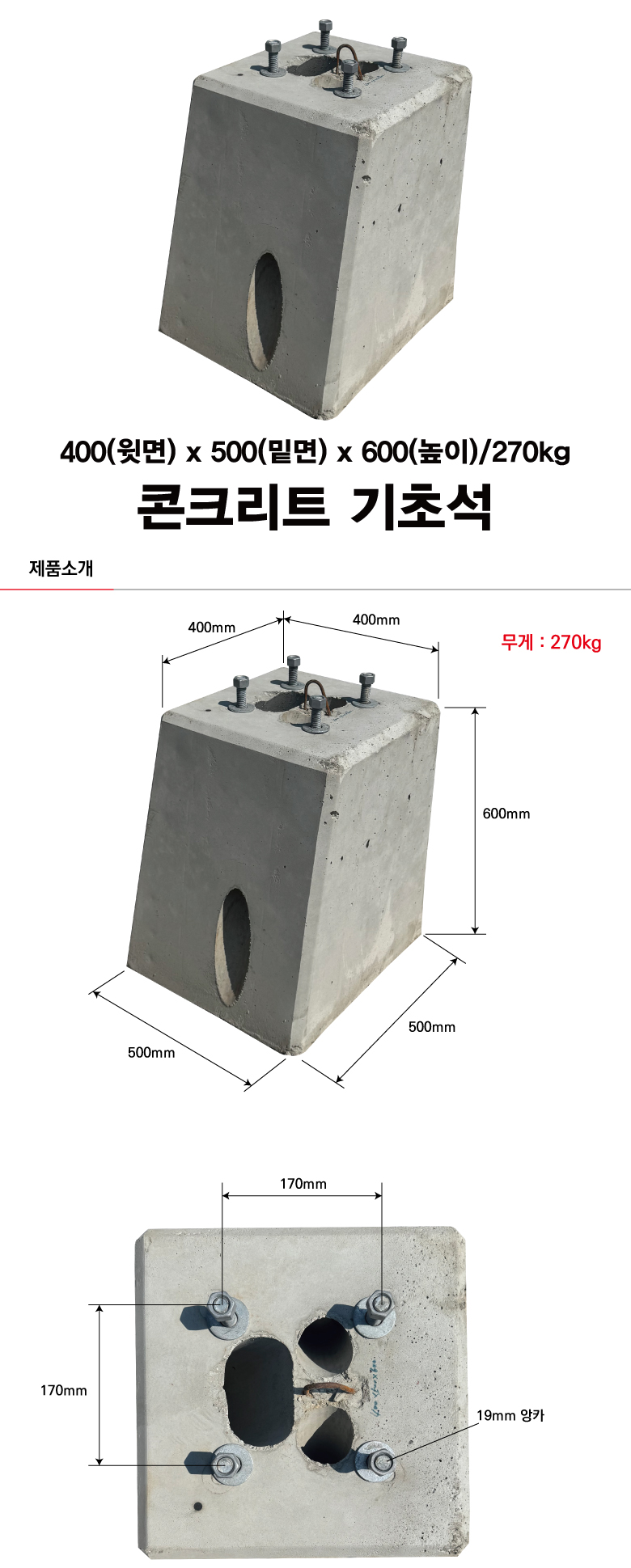 교통표지판/발광형표지판 기초석(콘크리트)/기초앙카] 기초석 (중형)