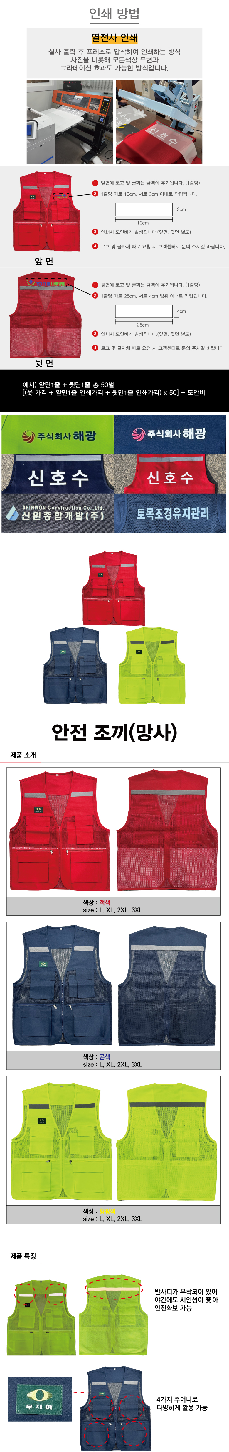 [H-55 안전조끼/작업티 안전조끼(열전사 인쇄 가능)] T/C안전조끼(망사)
