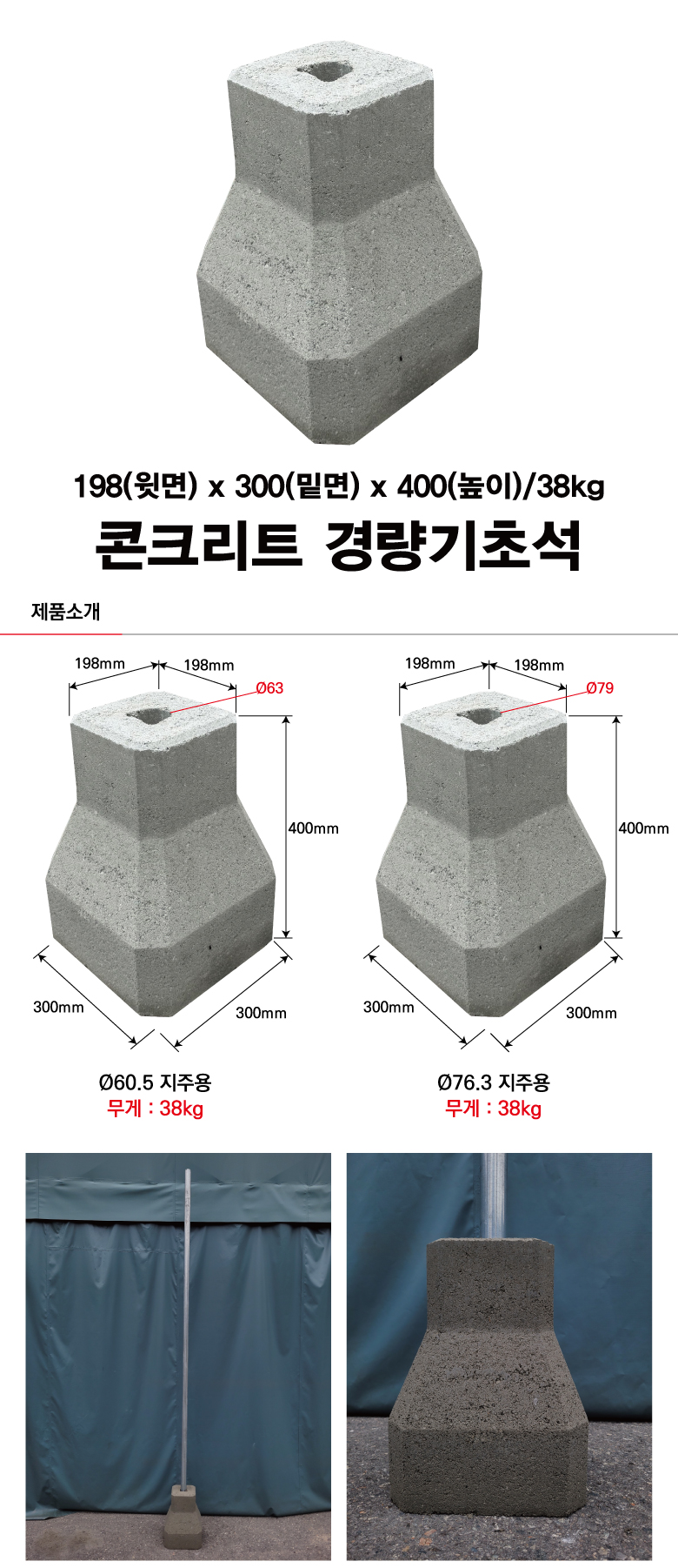 교통표지판/발광형표지판 기초석(콘크리트)/기초앙카] 경량 기초석(매립식)