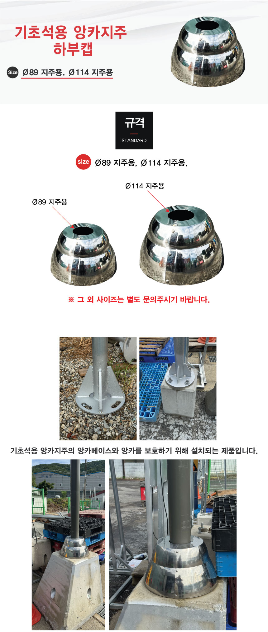교통표지판/발광형표지판 안전표지판 지주] 기초석용 앙카지주 하부캡