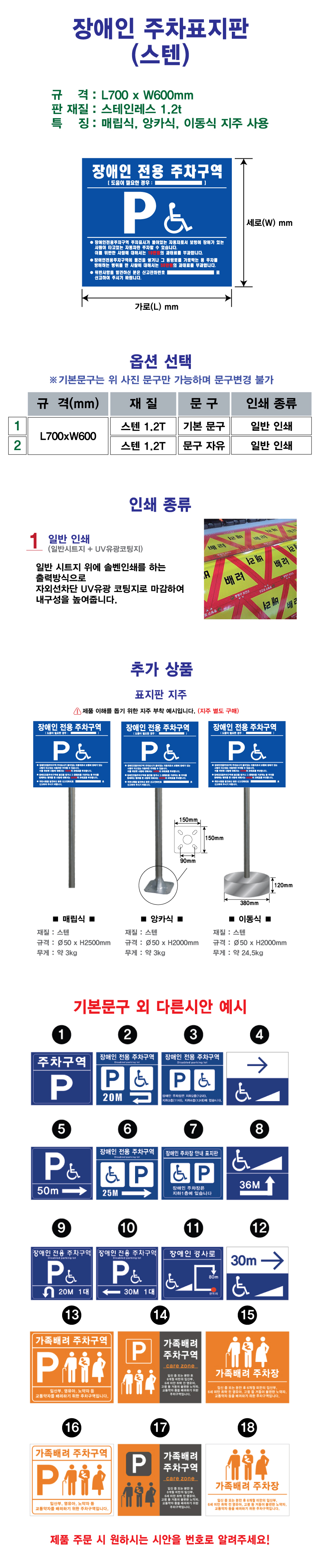 [H-30 장애인편의시설 장애인 주차표지판/가족배려 주차판] 장애인 주차표지판