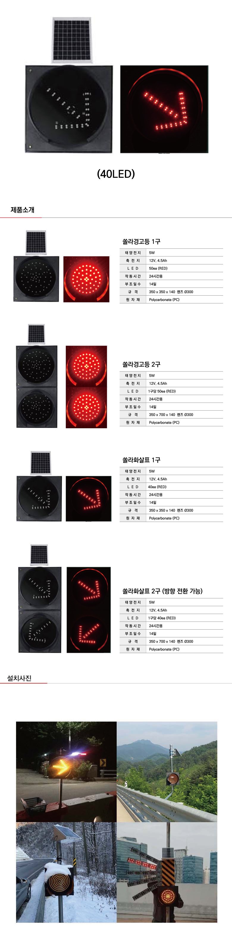 [H-24 쏠라교통표시등 경고등] 쏠라화살표1구(적색)
