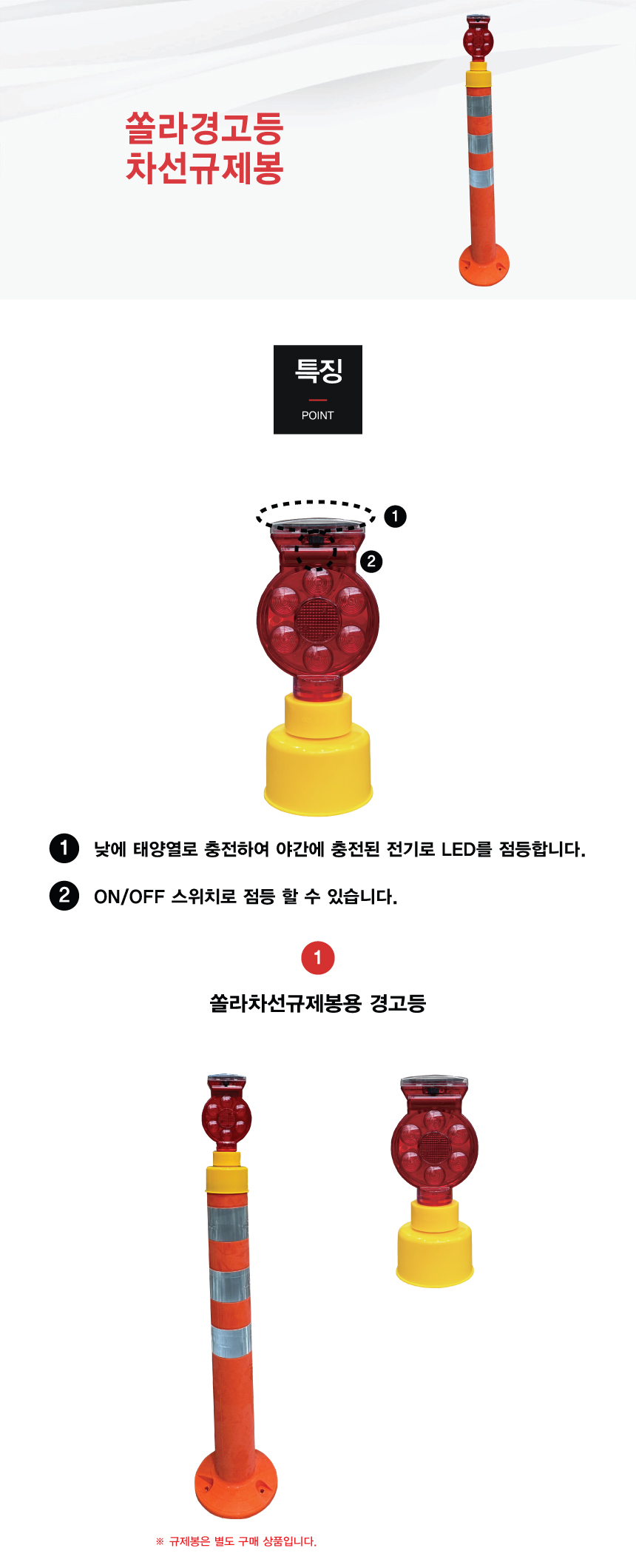 [H-1 차선규제봉(탄력봉) 규제봉 커버/ 쏠라차선규제봉] 쏠라차선규제봉 (규제봉별도)