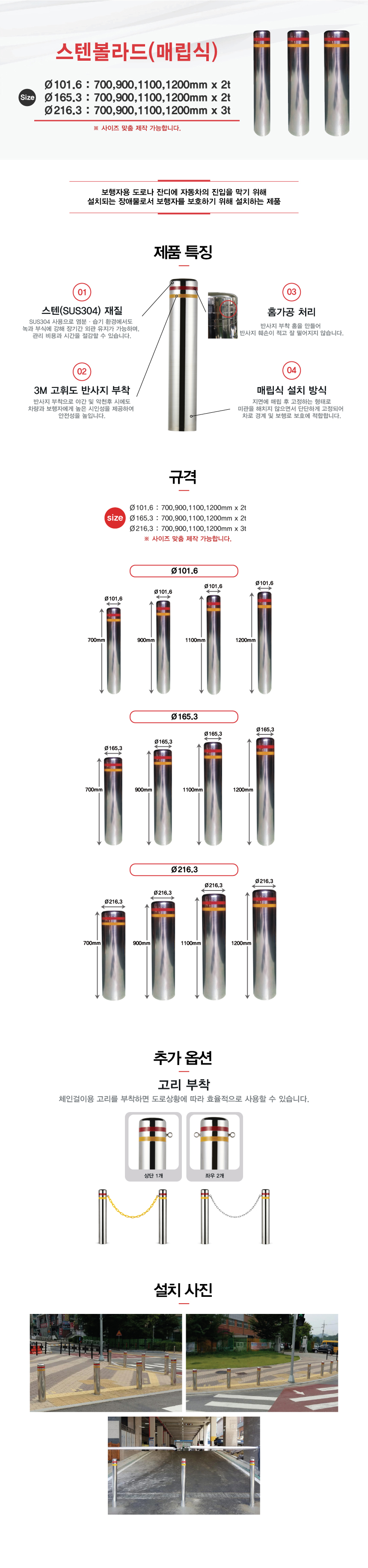 - 스텐볼라드 Ø216/(매립식) 사이즈 -