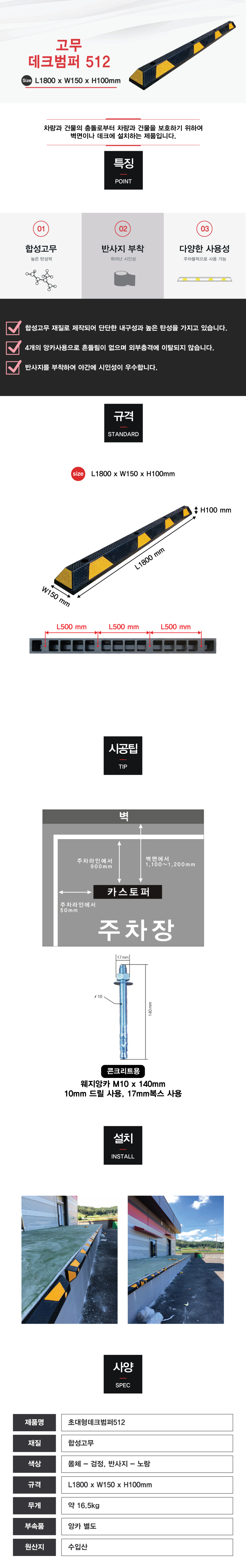 [H-2 카스토퍼(주차블럭) 데크범퍼] 초대형데크범퍼512(앙카별도)