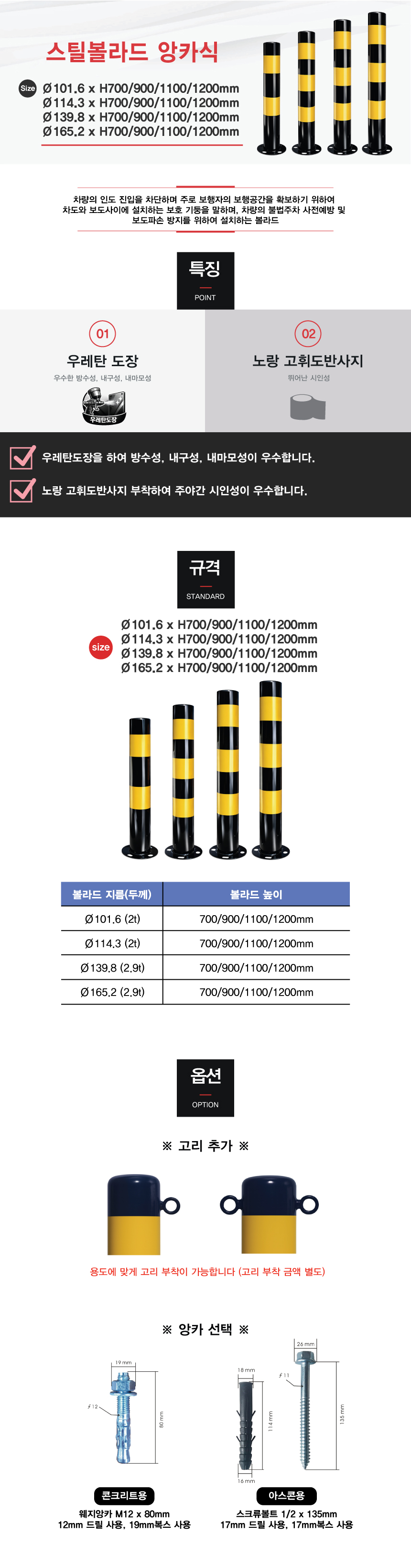 - 스틸볼라드 Ø165/앙카식 사이즈 -